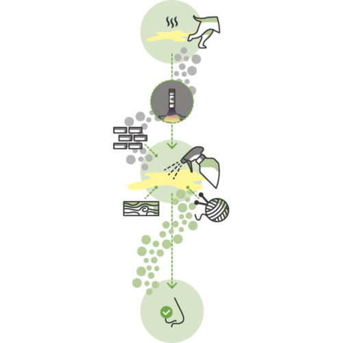 - Afvegen: Veeg het oppervlak schoon met een doek of spons. Herhaal indien nodig voor hardnekkige geuren.